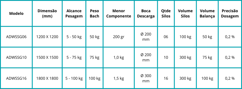 Com este sistema, é possível pesar uma variedade de produtos que são utilizados em diversos setores, a qual possuem, a necessidade de um controle dos processos de dosagem e mistura de produto. O formato único das gavetas possibilita obter uma excelente qualidade com diferentes densidades e características de fluidez e escoamento dinâmico.